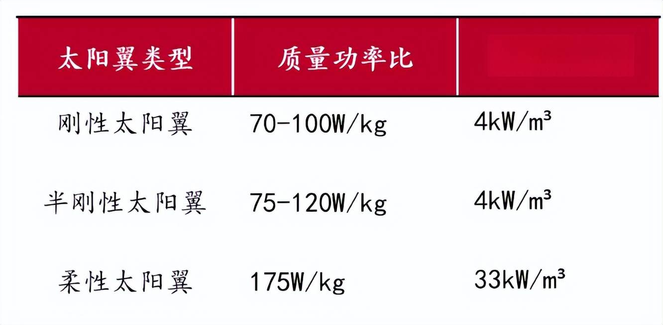 刚性太阳翼发电功率提升已触顶,其机械结构占比超 50%,基板厚 20-30mm,收纳时电池板需留 20mm 间距,体积偏大。柔性太阳翼收纳时基板可贴合压紧,无额外间距,大面积阵列收纳体积仅为刚性的 1/10,相同空间下展开面积更大,发电功率更高。